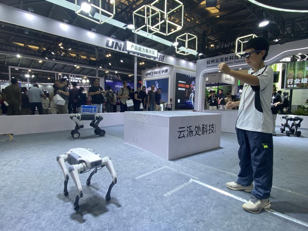 WAIC 2025|云深处科技:利用AR眼镜切换机器狗视角,通过手势操控机体