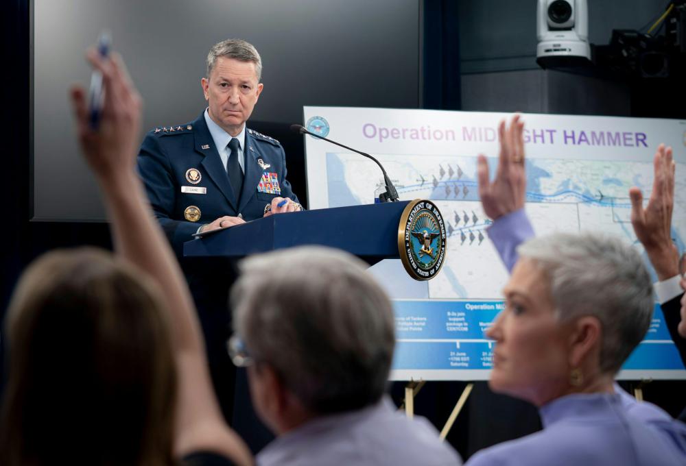 2025年6月26日,美军参谋长联席会议主席凯恩在五角大楼举行的关于美国打击伊朗核设施的新闻发布会上听取提问。