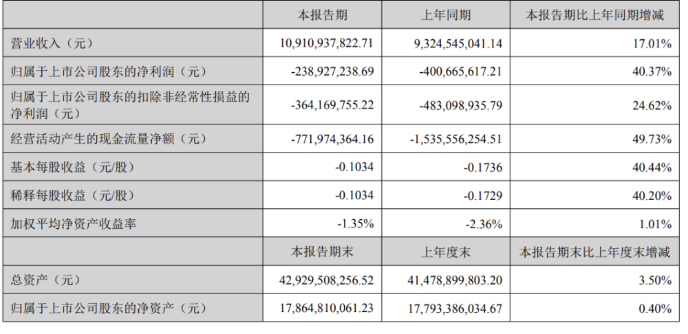 整体来看,科大讯飞上半年营收首次突破百亿元,达109.11亿元,同比增长17.01%;销售回款103.61亿元,同比多增13.5亿元。归母净利润为-2.39亿元,同比减亏40.37%,经营活动现金流量增长超过7.64亿元,同比提升49.73%。