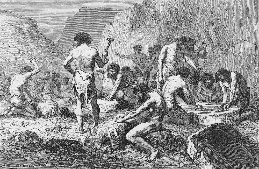 到大约260万年前,早期人类已发明出一种击打石块的方法,以凿下锋利的硬石片,这些石片可用作切割肉类的刀刃。这使得他们能够享用大型动物的肉,例如聚集在肯尼亚尼亚扬加考古遗址一处淡水泉附近的河马。