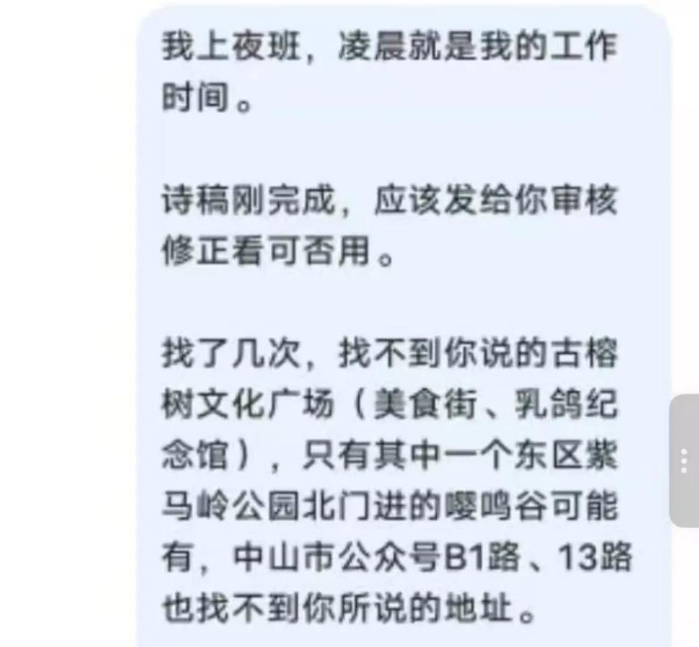 后来我们又确认了几遍,我需要在那一天,带齐身份证、诗稿和手机,到古榕树广场中央大榕树下,从容赴约。它最后说,“随时留言,我一直在”。