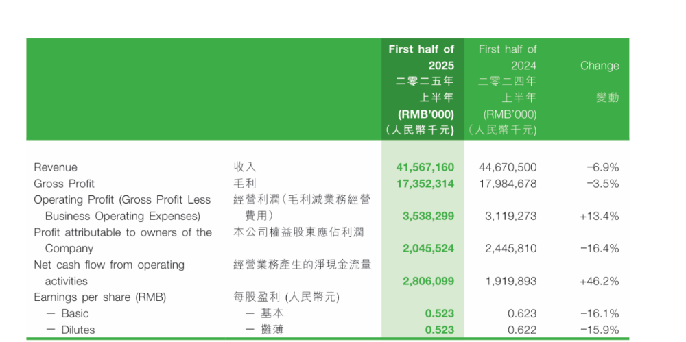 从经营数据来看,蒙牛近两年来面临显著的业绩承压态势。2024年,公司实现营业收入886.75亿元,同比下滑10.1%,股东应占利润1.05亿元,同比大幅下滑97.8%;2025年上半年业绩未见明显回暖,营业收入415.67亿元,同比下滑6.9%,股东应占利润20.46亿元,同比下滑16.4%。