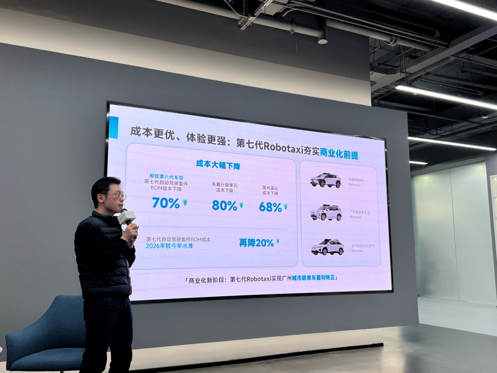 王皓俊提供了一组数据:技术优化直接推动小马智行第七代Robotaxi车型的ADK(自动驾驶套件)成本较第六代车型下降70%,其中车载计算单元成本降低80%,激光雷达成本降低68%;且从明年开始,同样的ADK成本将继续下探20%。他进一步预测,ADK成本的下降趋势将持续,进而为公司拓展更多毛利空间。