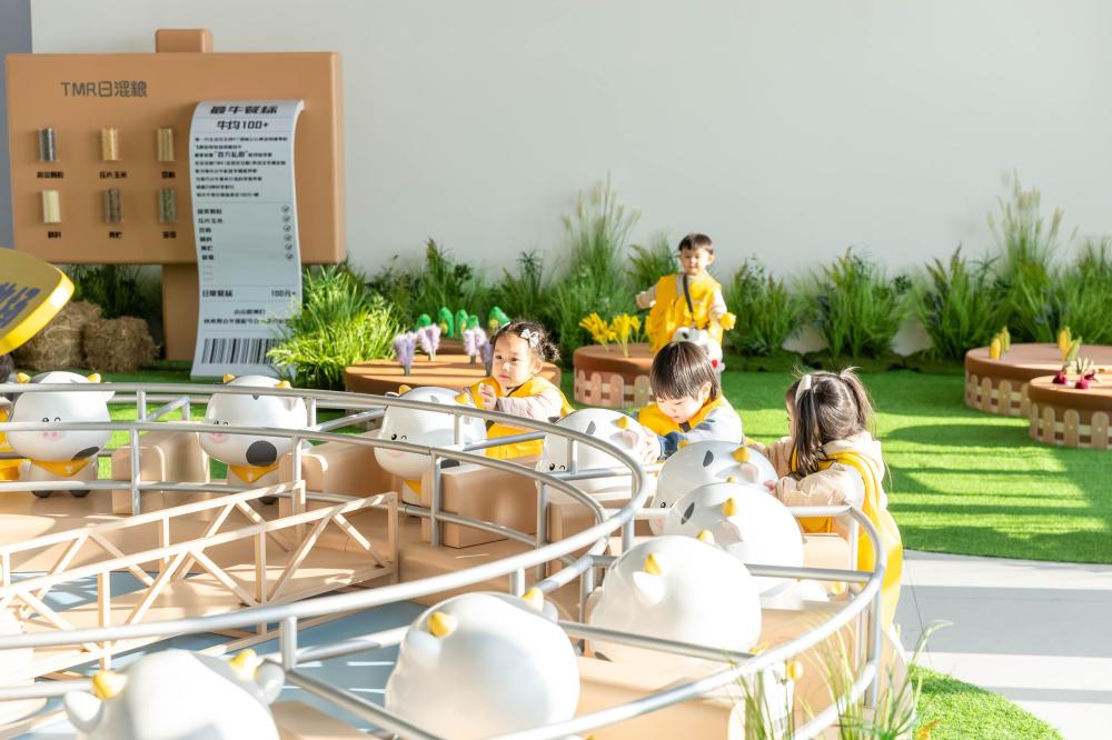 2025年1月,参加工厂游的儿童们在飞鹤哈尔滨工厂内的“小小牧场”体验。