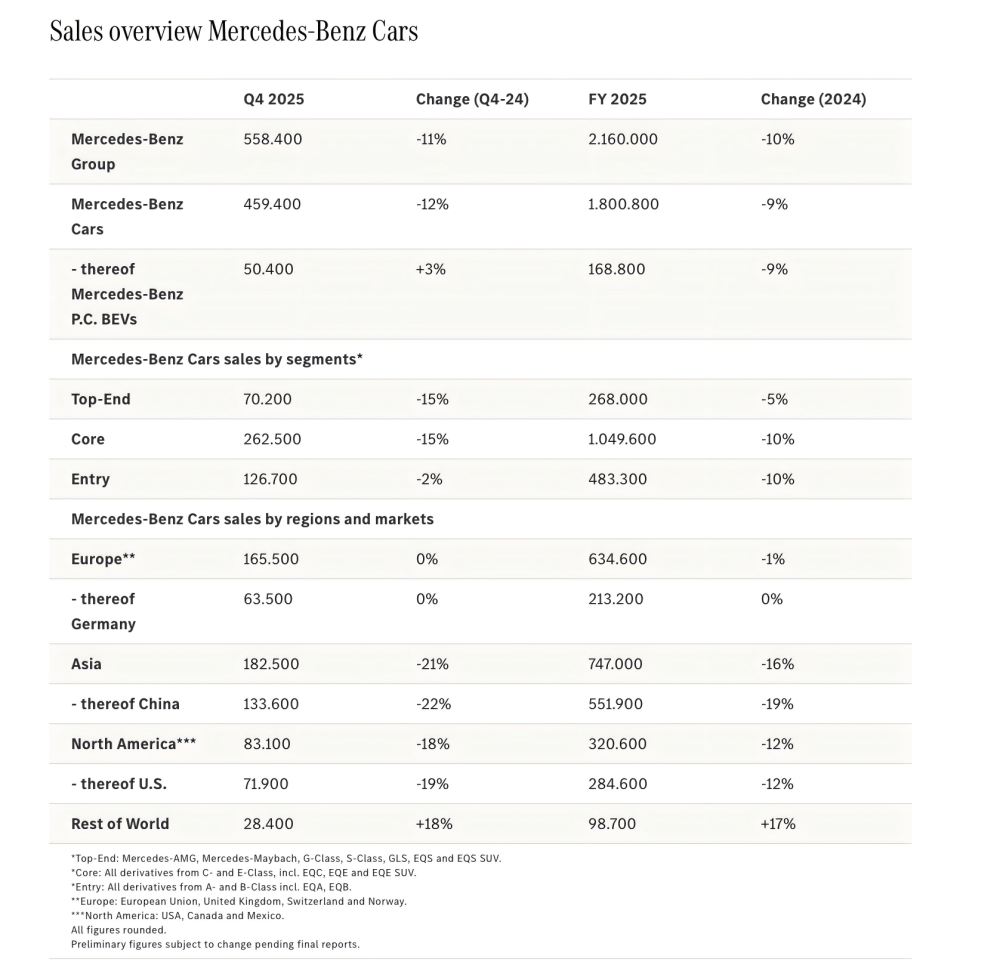 梅赛德斯-奔驰集团2025年销量(图/官网截图)