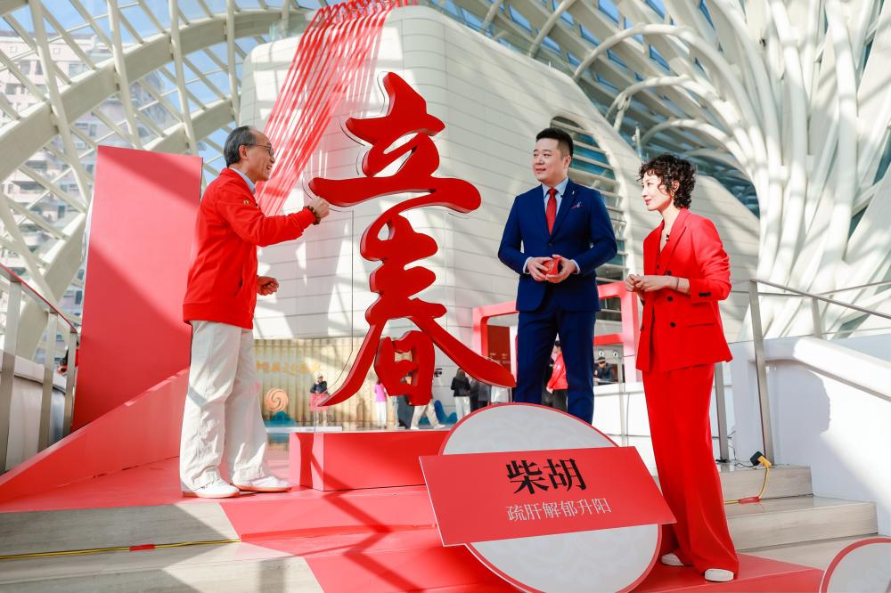 盛典当天适逢中国传统节气“立春”,现场特别设计了一处“节气阶梯”,二十四节气依次展开,每个节气对应着一味中药材。凤凰卫视主持人万俊、田川与中药学家赵中振沿着阶梯而上,话题顺着脚下的节气与药材自然展开。