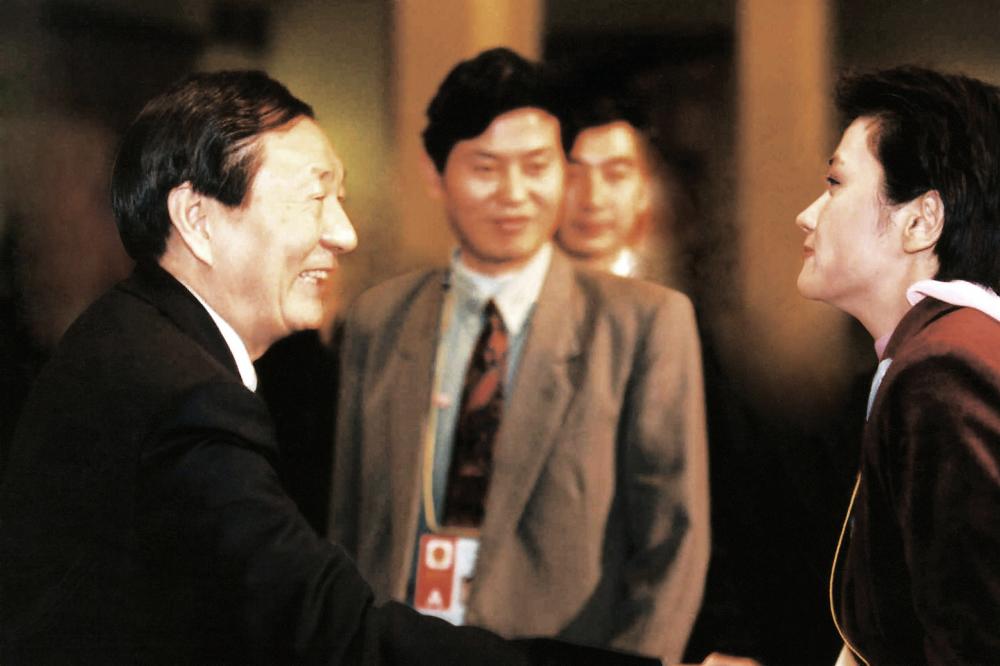 2019年,凤凰网长期致力于打造重情怀的体育深度访谈节目,2019年,凤凰网《体育英雄联盟》拍摄现场,主持人邓亚萍与许海峰开心互动。