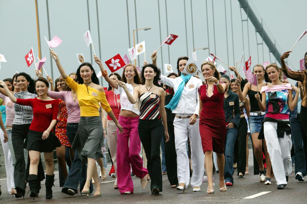 2003年11月8日,由凤凰卫视策划组织的“第53届世界小姐”之“美丽的眼睛看中国”活动在港启程,110个国家和地区的佳丽在香港、西安、上海和北京进行了为期一个月的慈善访问。(上左图)
