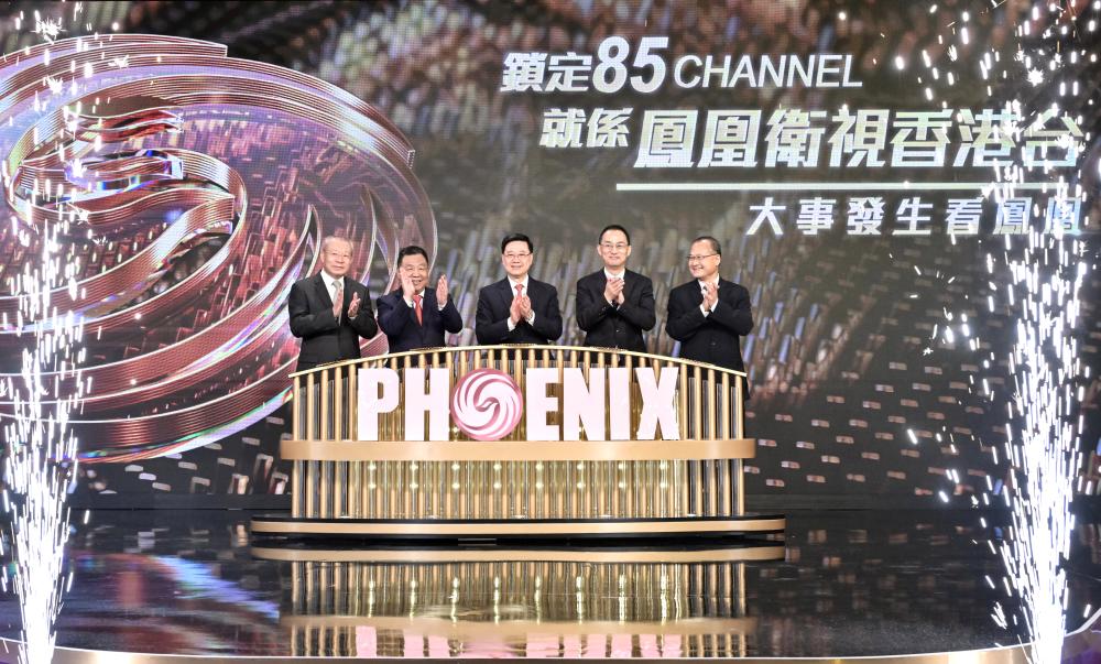 2025年4月22日,凤凰卫视香港台于香港免费电视85频道开播一周年庆典在凤凰卫视香港大埔总部隆重举行。香港特区行政长官李家超、紫荆文化集团董事长许正中、凤凰卫视董事局主席兼行政总裁徐威、凤凰卫视常务副行政总裁兼总编辑孙玉胜以及全国政协常委、粤港澳大湾区企业家联盟主席蔡冠深担任主礼嘉宾。(左起:孙玉胜、许正中、李家超、徐威、蔡冠深。)