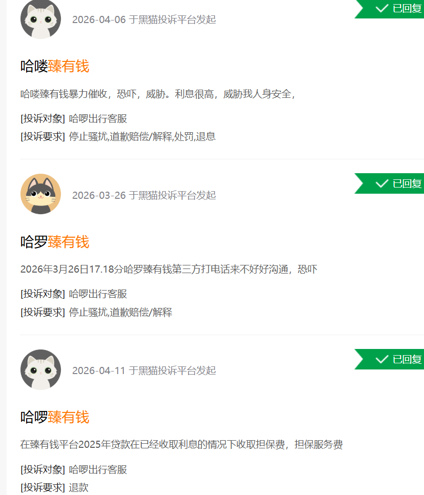 截至发稿,在黑猫投诉平台,已有11214条关于臻有钱平台的投诉,涉及担保费、担保服务费等不合理收费、高利息以及暴力催收等问题。