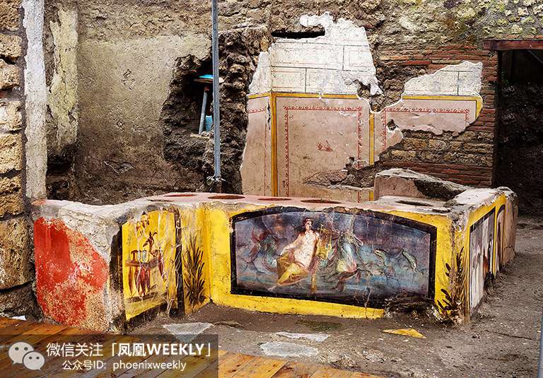 Thermopolium(在希腊语中,thermos指热的,poleo指售卖)在罗马时代非常流行,仅庞贝就有80家这样的店。公元79年因维苏威火山喷发而被埋葬的庞贝古城是意大利客流量第二的景点,仅次于罗马斗兽场。古城2019年客流量接近400万人次。目前,考古人员只发掘了约三分之一的遗址,也就是那不勒斯附近约44公顷的一片区域。