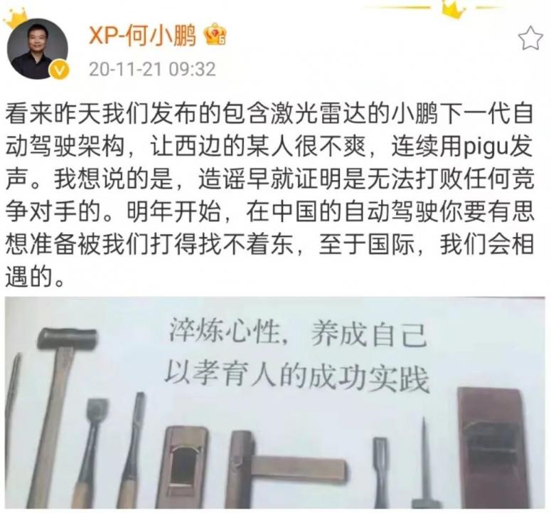 随后小鹏汽车CEO何小鹏回怼“造谣无法打败任何竞争对手”,还称“明年开始,在中国的自动驾驶你要有思想准备被我们打得找不着东,至于国际,我们会相遇的。”