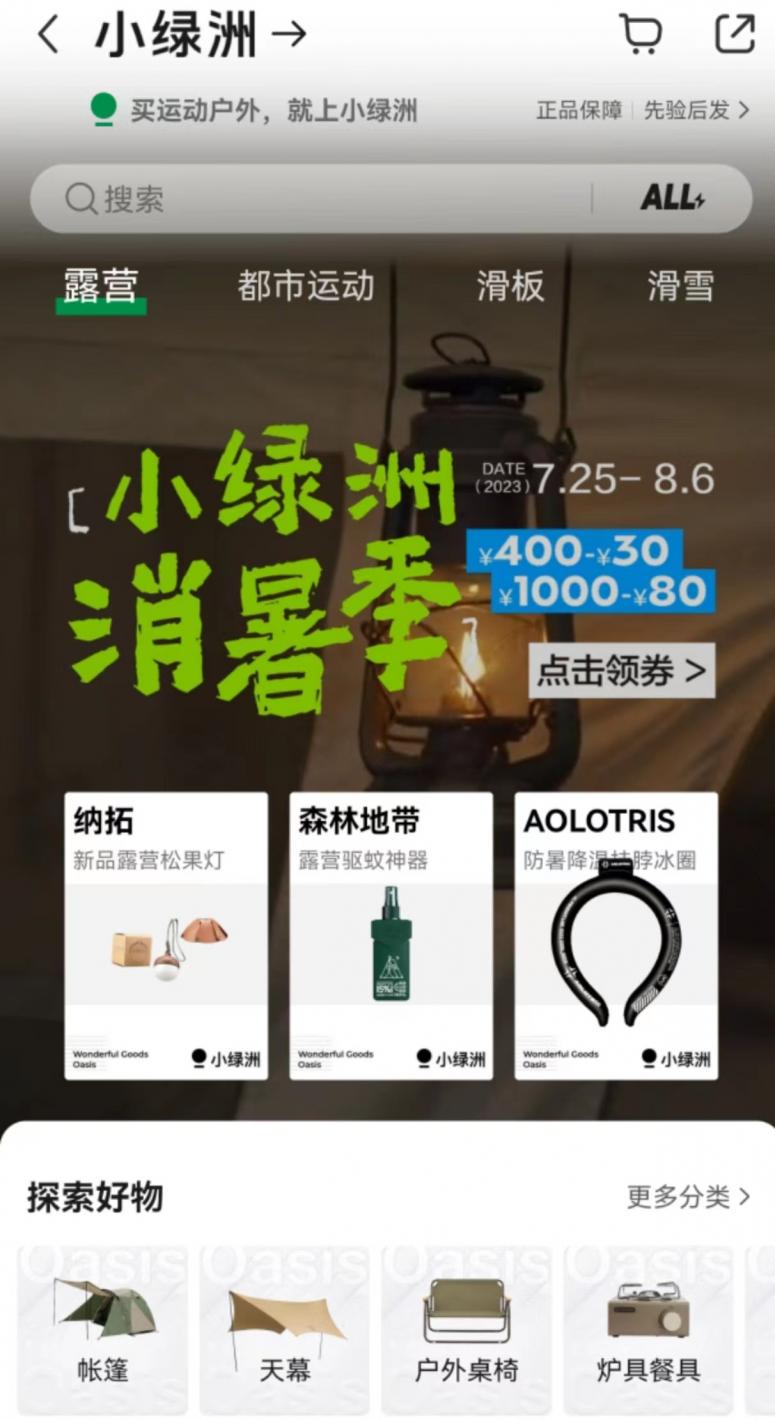 2022年,小红书做了三件事:自建线下营地“安吉小杭坑”、上线自营店铺“小绿洲”售卖户外露营用品、成立了璞真乡里(上海)旅游文化有限公司。