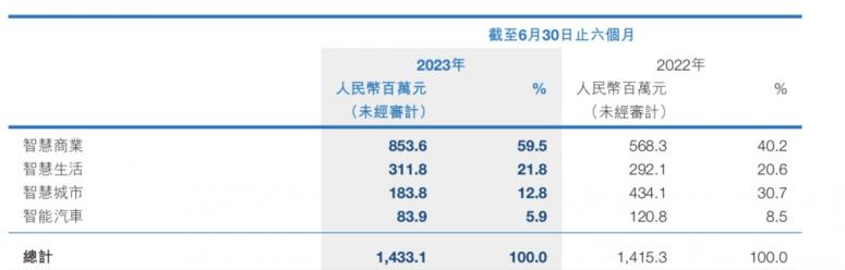 出现下降的还有智能汽车业务,同比下降30.5%,而去年同期还实现了超过70%的增长。