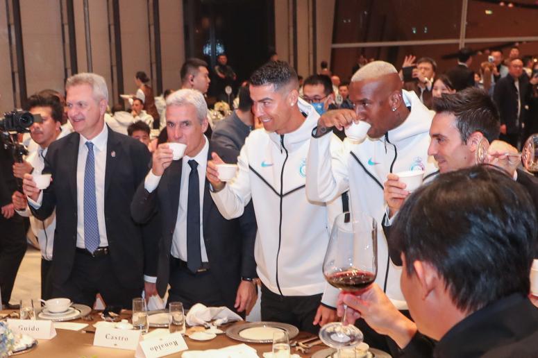 1月22日晚间,C罗与利雅得胜利队参加了本次中国行的欢迎晚宴。本该是严肃的场合,却因为一群网红让C罗觉得无所适从。