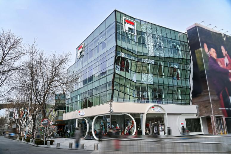 出了新店,不远处便是FILA旗舰店所在地,三层超大空间,容纳了专业运动、时尚运动、潮流运动三大主题产品。
