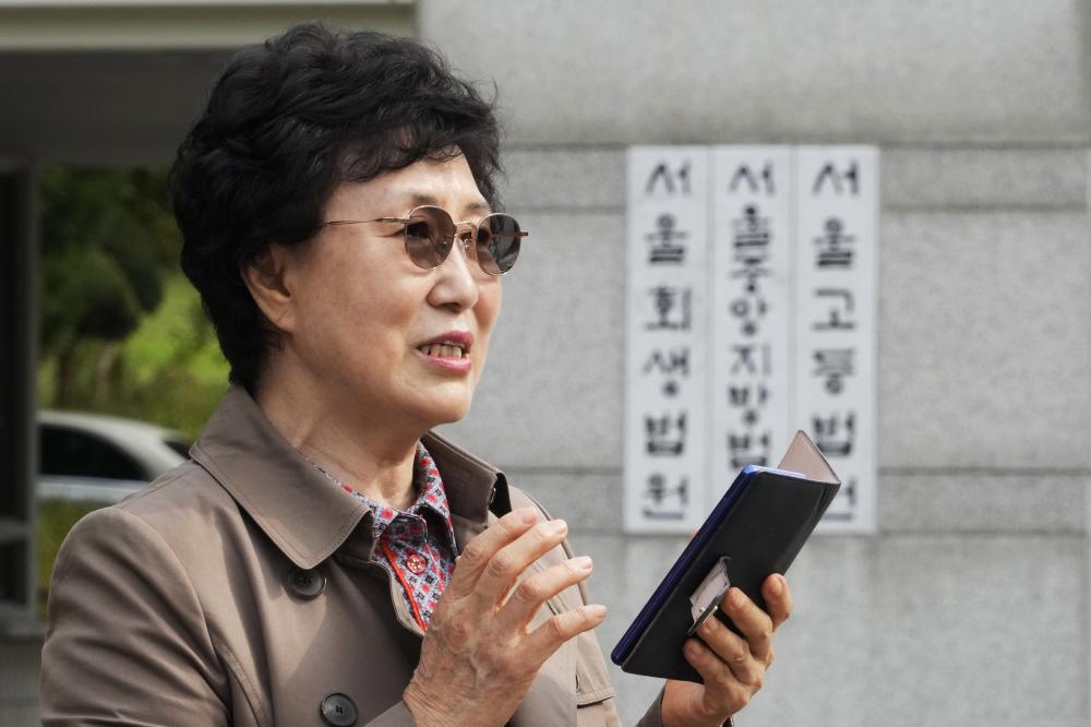 2024年10月7日,韩泰顺在首尔中央地方法院举行的新闻发布会上发表讲话。