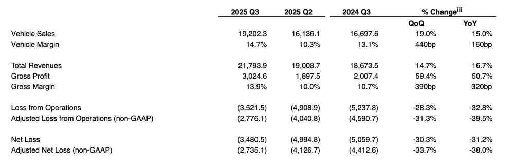 2025年Q3蔚来主要财务指标(图/财报截图)