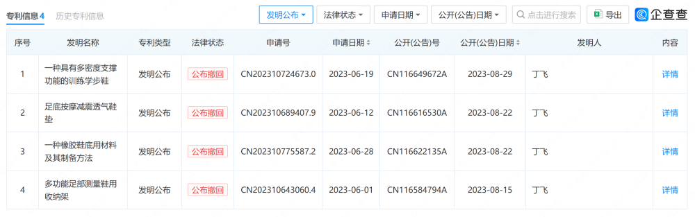 企查查数据显示,杭州泰潼商贸有限公司(泰兰尼斯母公司)共有67条外观设计专利申请通过、7条实用新型专利申请通过,但4条发明公布专利申请均无效。