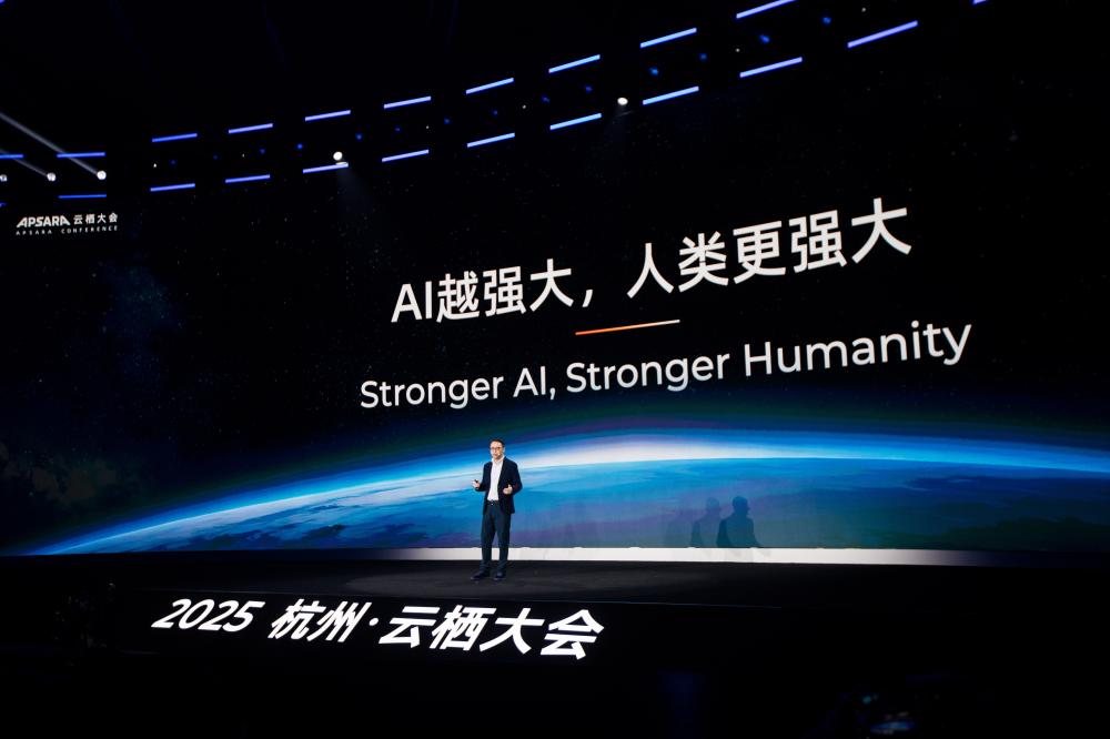 2025年9月24日,杭州,阿里巴巴集团CEO吴泳铭在云栖大会上发表主旨演讲。