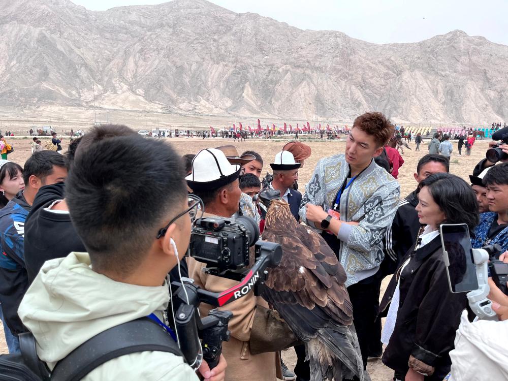2025年6月,新疆维吾尔自治区克孜勒苏柯尔克孜自治州阿合奇县。凤凰卫视大型沉浸式“旅游+”中英文纪录片《凤凰访谈录·西行记》正在拍摄。当期主持人、《凤凰周刊》执行主编张弛,在前“篮球国手”可兰白克·马坎带领下走进中国“西极”,采访当地的驯鹰人。阿合奇县被誉为“中国猎鹰之乡”,当地的驯鹰习俗已于2011年被列入国家级非物质文化遗产。