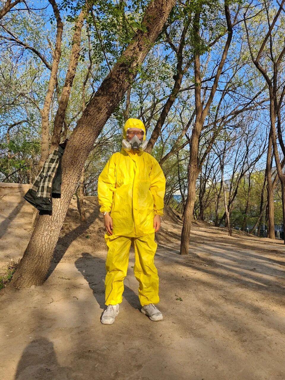 校园里几乎人人都认识这位穿着夸张的“二手烟斗士”——为了洗澡后不沾烟味,李迪常常穿着黄色防护服、戴着防毒面具,往返于澡堂和宿舍之间。连半夜上厕所也要全副武装。偶尔遇到不认识他的人,会在电梯里问,“朋友,拍完什么片子回来?”李迪戴着面具不便说话,只能摆摆手,或简单吐出两个字,“过敏。”