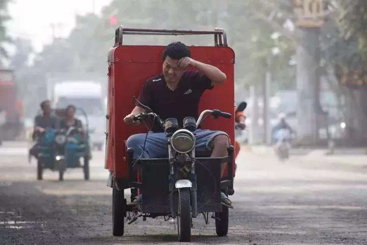 北京郊区,一个骑着电动车送货的男人。供图-路透社