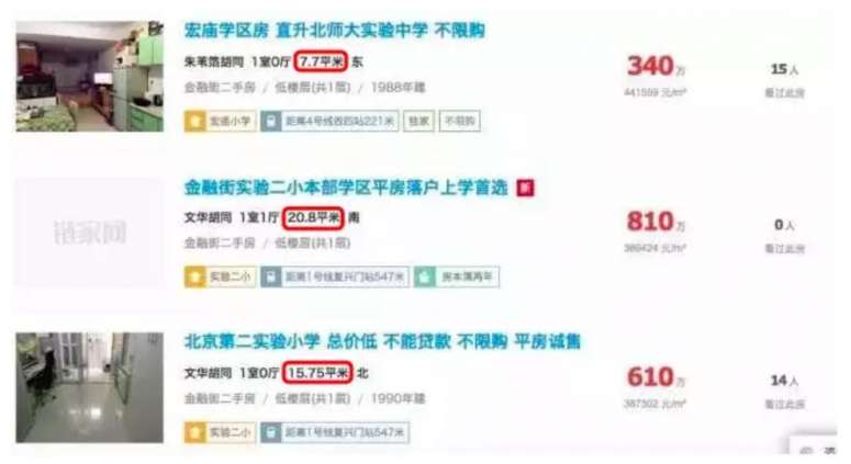 看客们对天价学区房的出现司空见惯。比如,前有标价150万元的北京“过道学区房”,