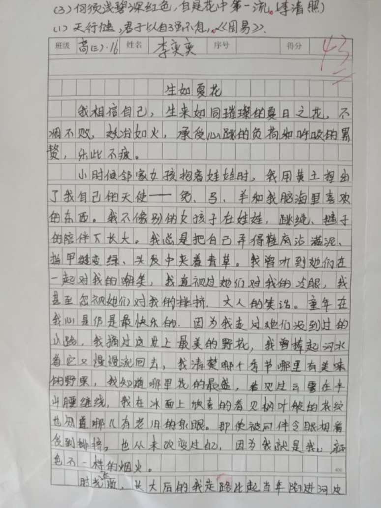 2017年9月8日李奕奕补写的一篇作文